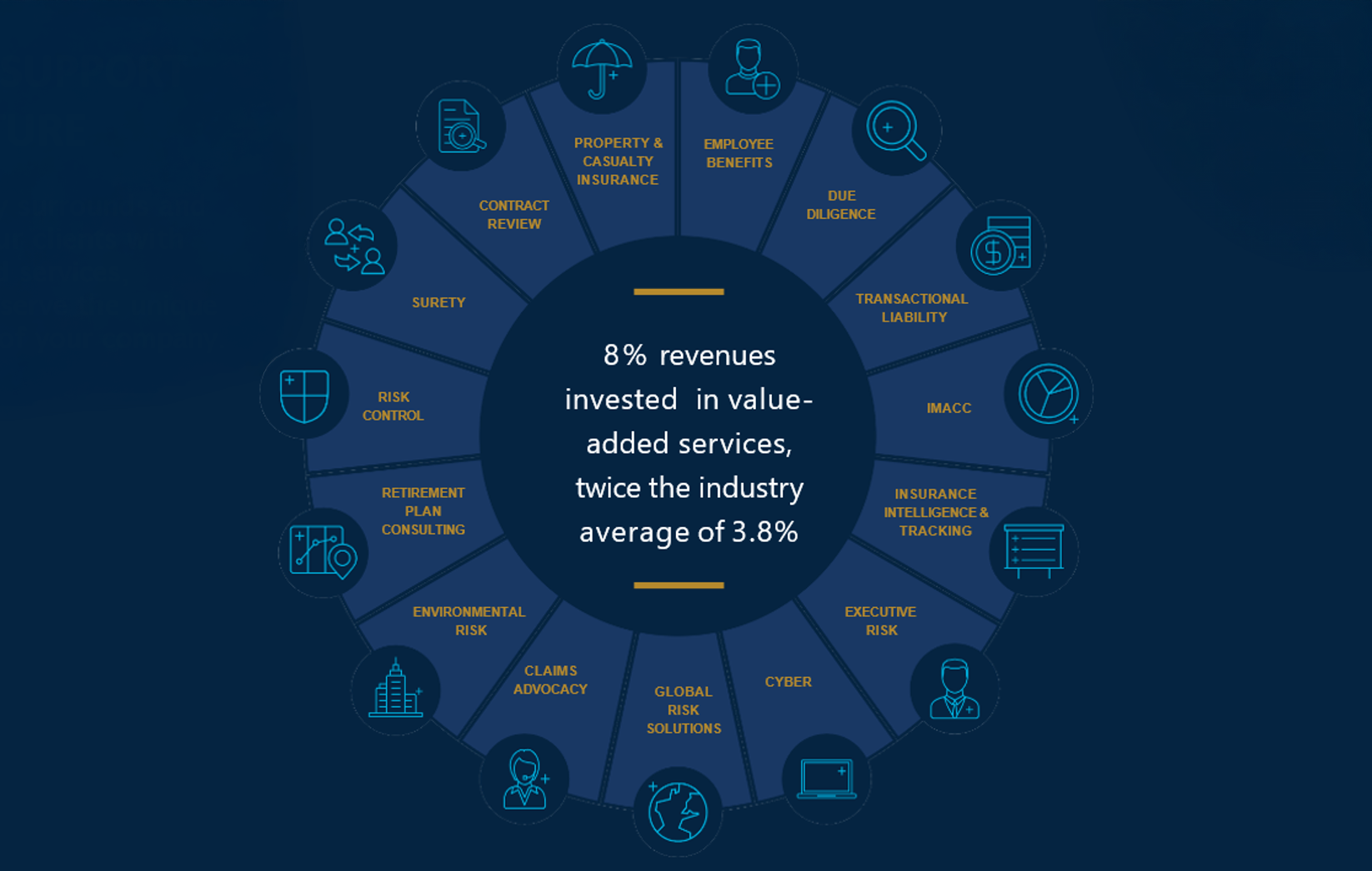 This comprehensive risk Practice Group will solve for the overstretched General Counsel’s office that has broad needs and limited resources. These services will be provided as ancillary to insurance or benefits products and will not be fee-based, except in extraordinary circumstances.