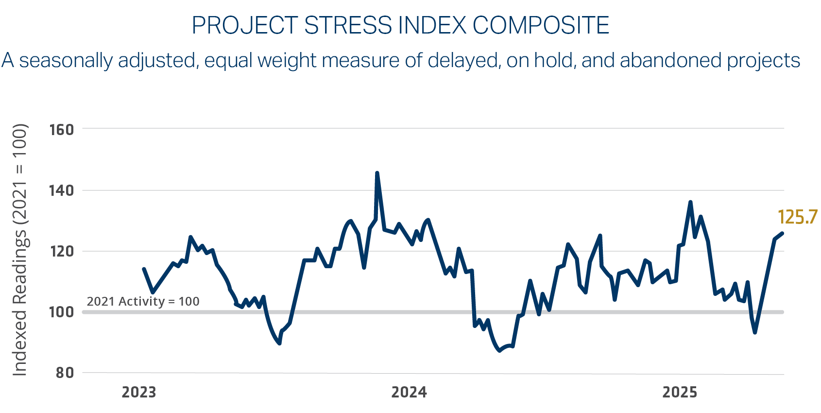 Project stress levels have increased, reflecting rising uncertainty across construction planning and execution. Elevated levels of on-hold and abandoned projects signal growing pressure on project pipelines despite stable backlog levels. According to AGC, 63% of contractors report that at least one project has been postponed, scaled back, or canceled within the past six months.9